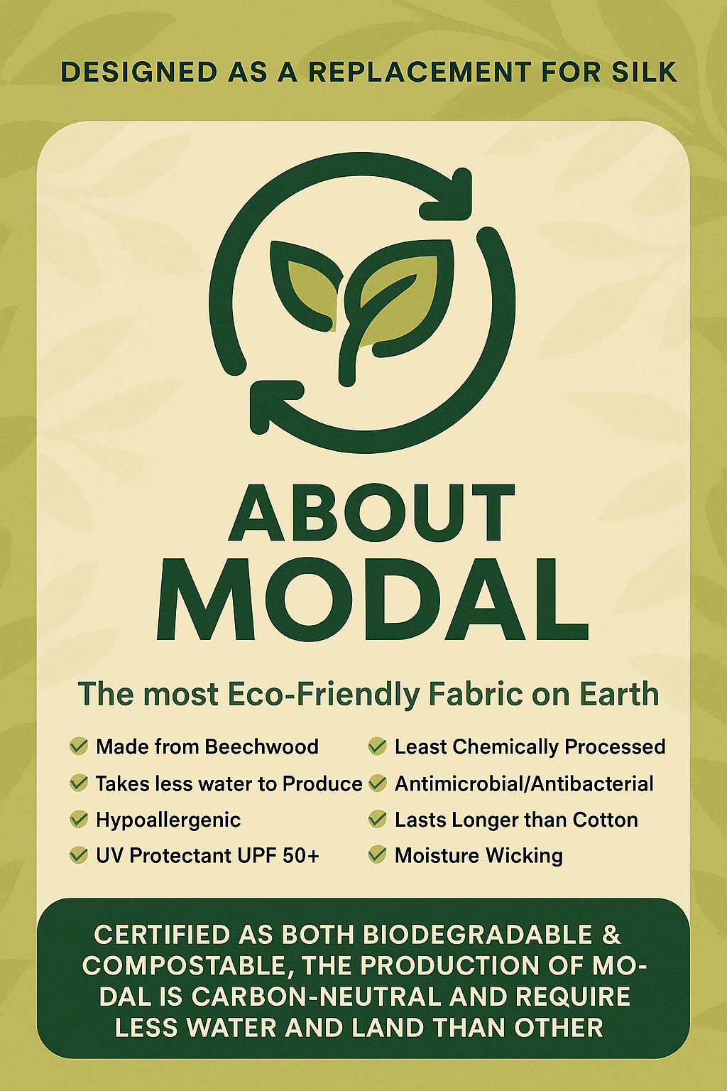 • Our Modal fabric was designed as a replacement for silk so you can imagine how flowy and soft it feels on your skin.